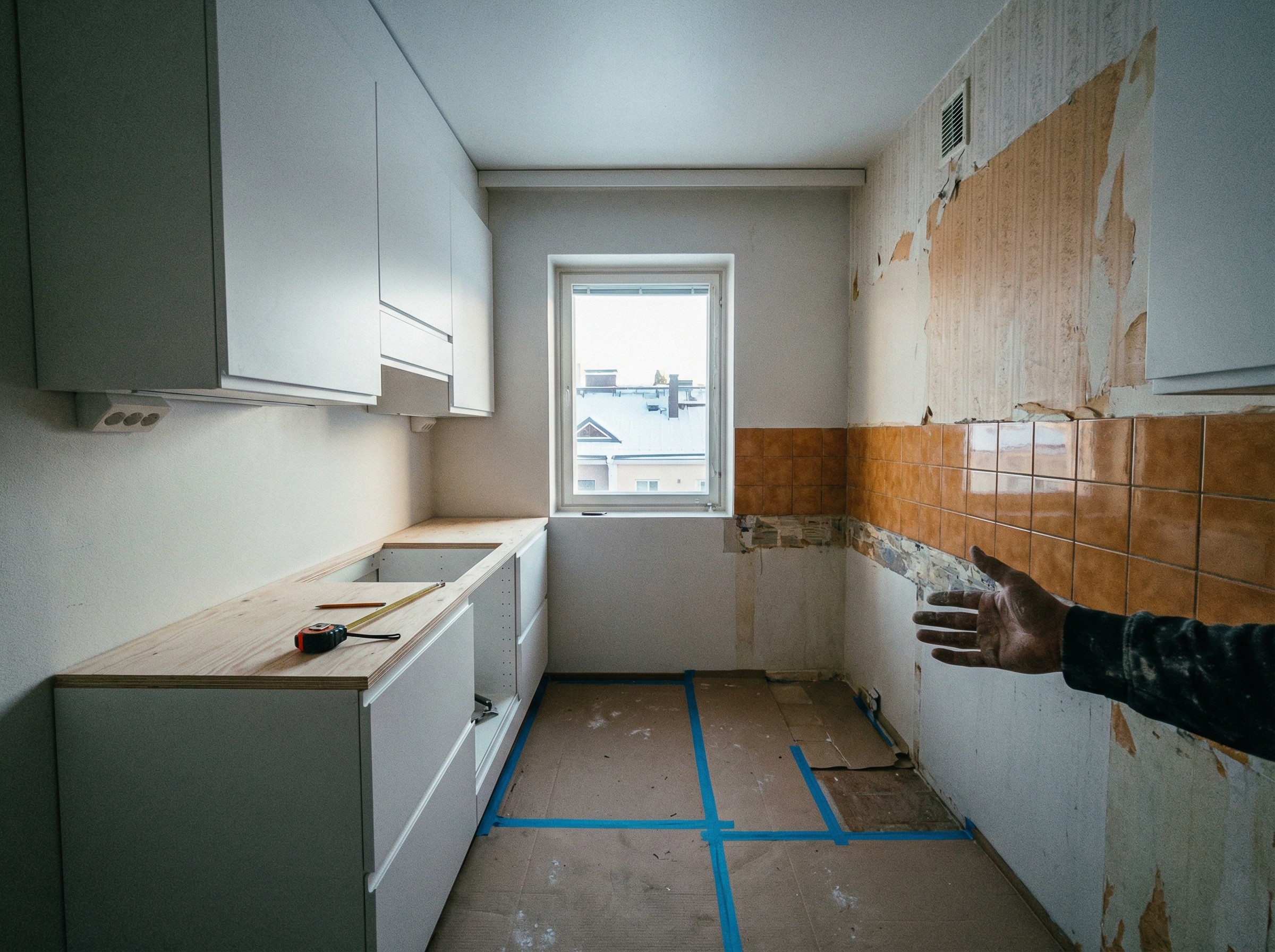 Kerrostaloasunnon keittiöremontti käynnissä